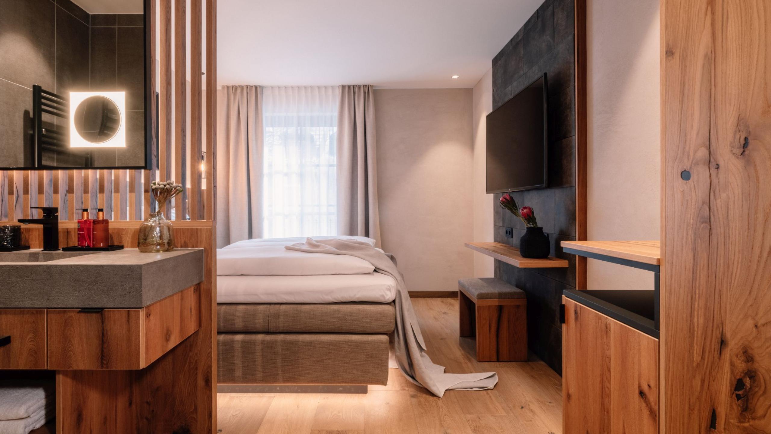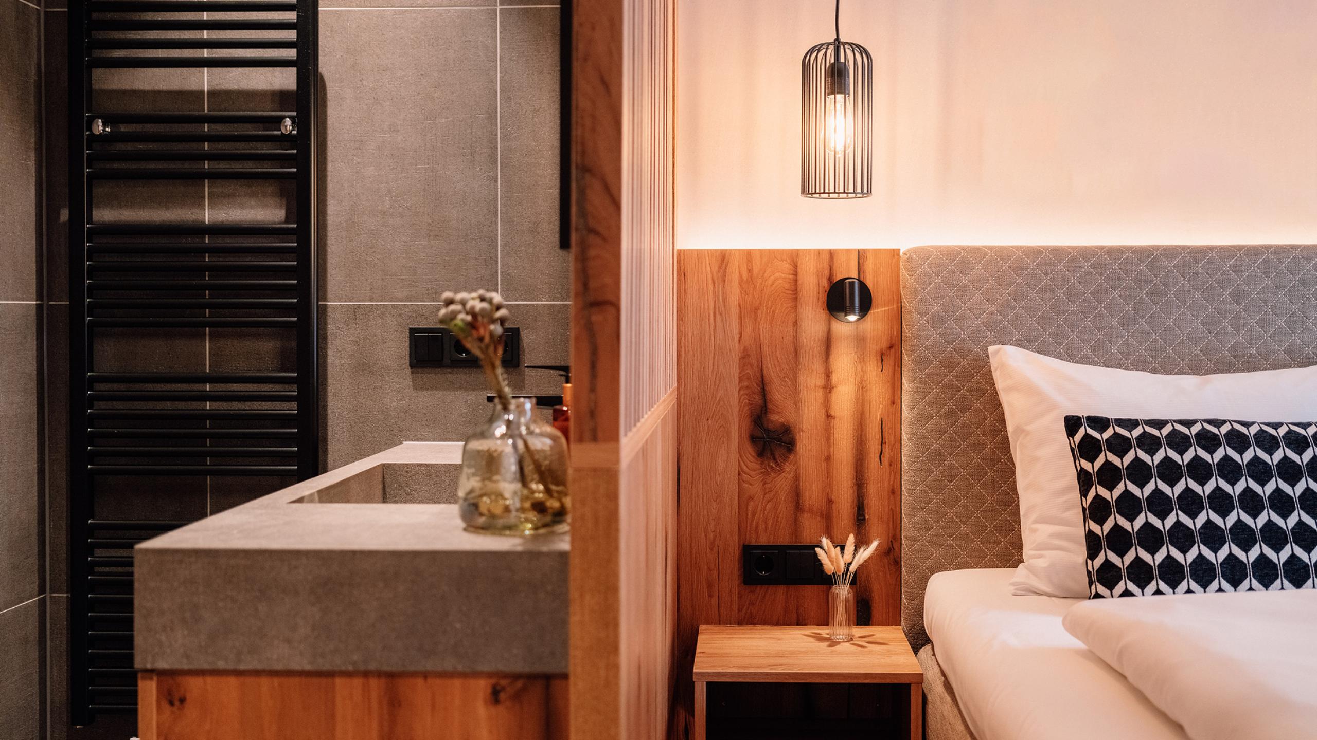 For those who want a little more space to relax. A harmonious holiday for two. With an open concept bathroom.