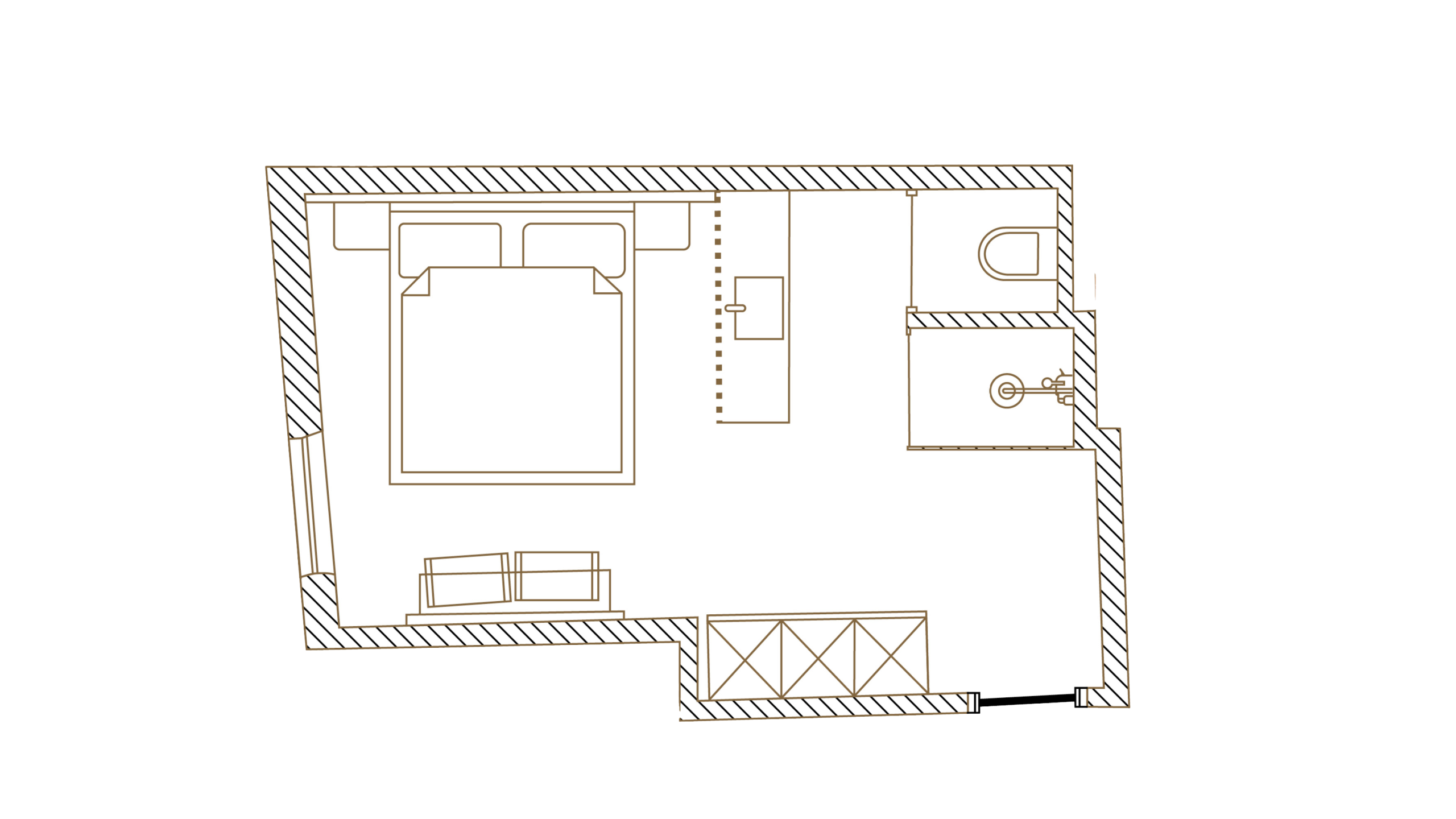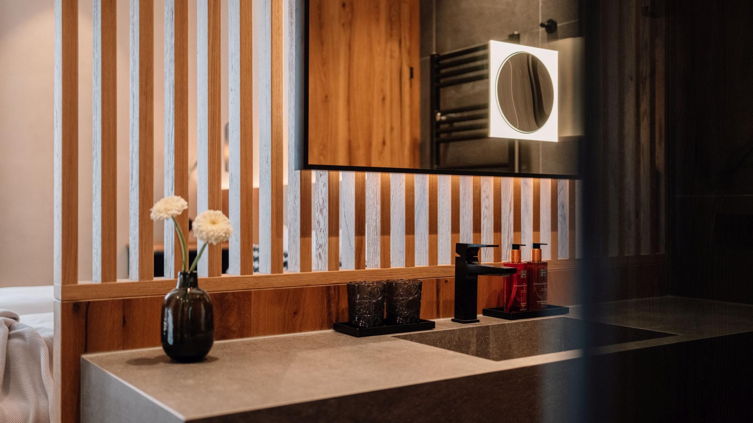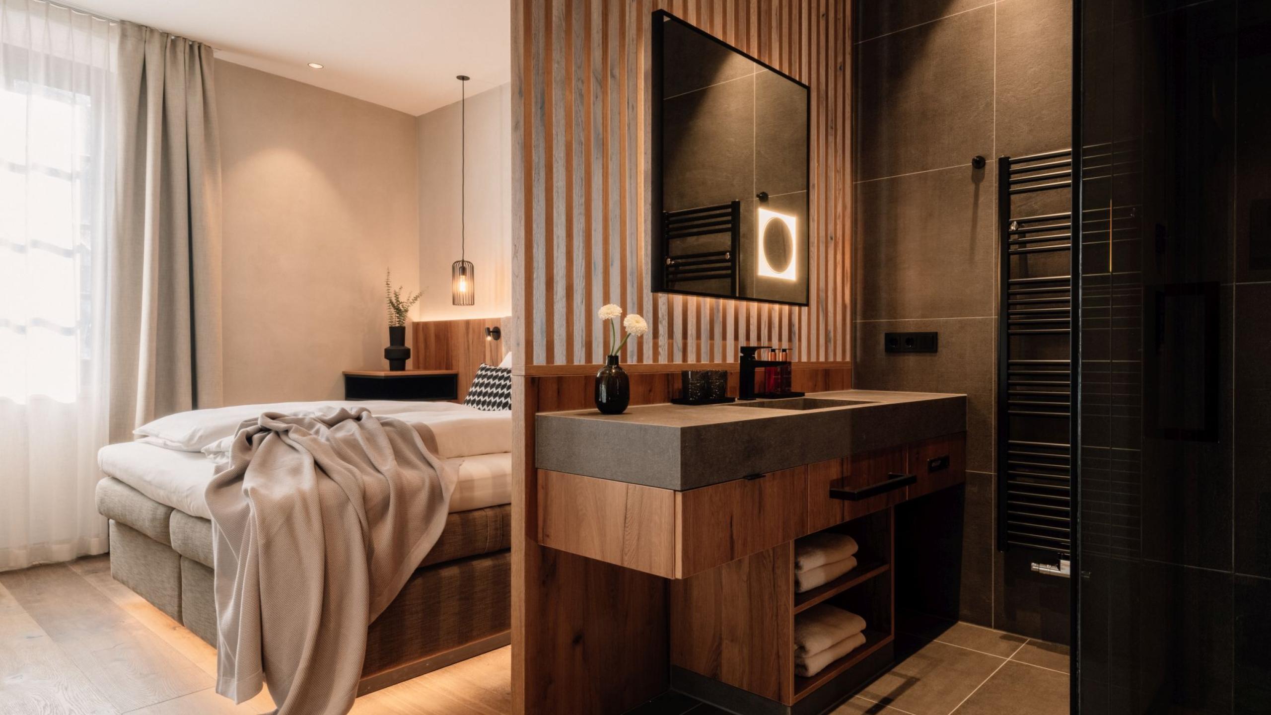 These rooms are designed for cosy moments for two. Compact yet relaxed for couples. Enjoy our open concept bathroom.
